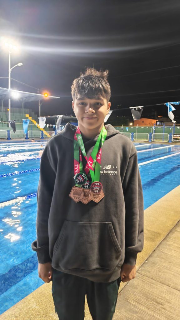 El atleta, quien forma parte de la categoría juvenil y nada desde los 5 años, tuvo una destacada participación en el torneo, logrando tres medallas de bronce y ubicándose entre los ocho mejores competidores en otras tres pruebas, consolidando así una actuación sobresaliente frente a una fuerte competencia nacional.
