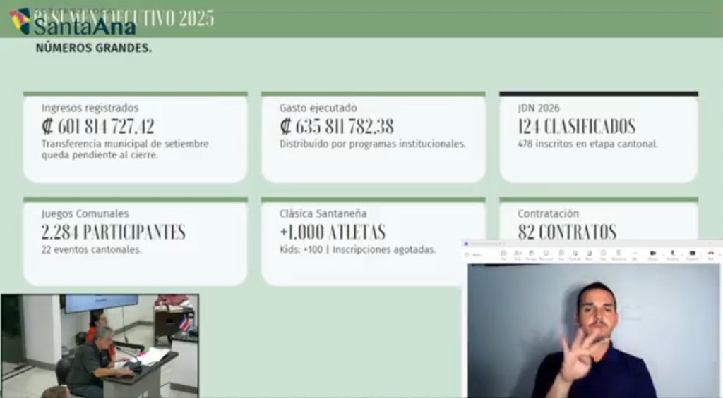 El Comité Cantonal de Deportes y Recreación de Santa Ana presentó su informe de labores 2025 ante el Concejo Municipal, destacando una alta participación deportiva, importantes logros competitivos y una ejecución presupuestaria superior a los ₡600 millones, en medio de cuestionamientos sobre el acceso a instalaciones y el uso de recursos administrativos.