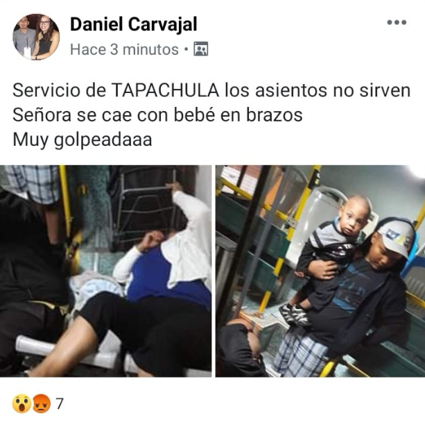 Las quejas incluyen unidades en mal estado, fallas mecánicas, asientos deteriorados y situaciones que comprometen la seguridad de los usuarios. En redes sociales han circulado imágenes de accidentes los últimos años, entre ellos colisiones y casos donde pasajeros resultaron golpeados, como el de una mujer que cayó dentro de una unidad mientras viajaba con un bebé en brazos.