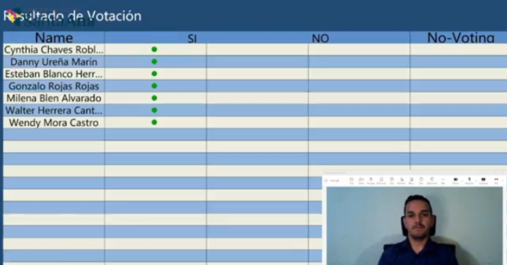 Posteriormente, la presidenta municipal, Wendy Mora, presentó una moción con dispensa de trámite de comisión para proceder con el nombramiento. Dicho documento de la terna fue suscrito por la directora del centro educativo, Jacqueline Arias Castro, y cuenta con el aval del supervisor del circuito 4 de Santa Ana, Alonso Jiménez Díaz.