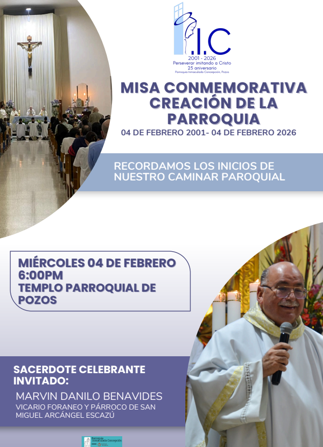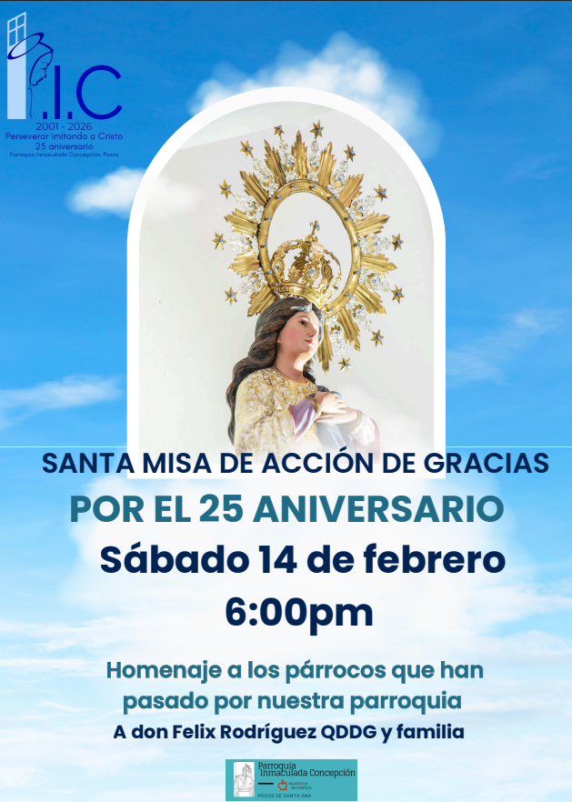 La Parroquia Inmaculada Concepción de Pozos conmemorará su 25 aniversario de creación con una serie de actividades religiosas y comunitarias que se desarrollarán durante varios días de febrero de 2026, en un ambiente de fe, gratitud y unión parroquial.