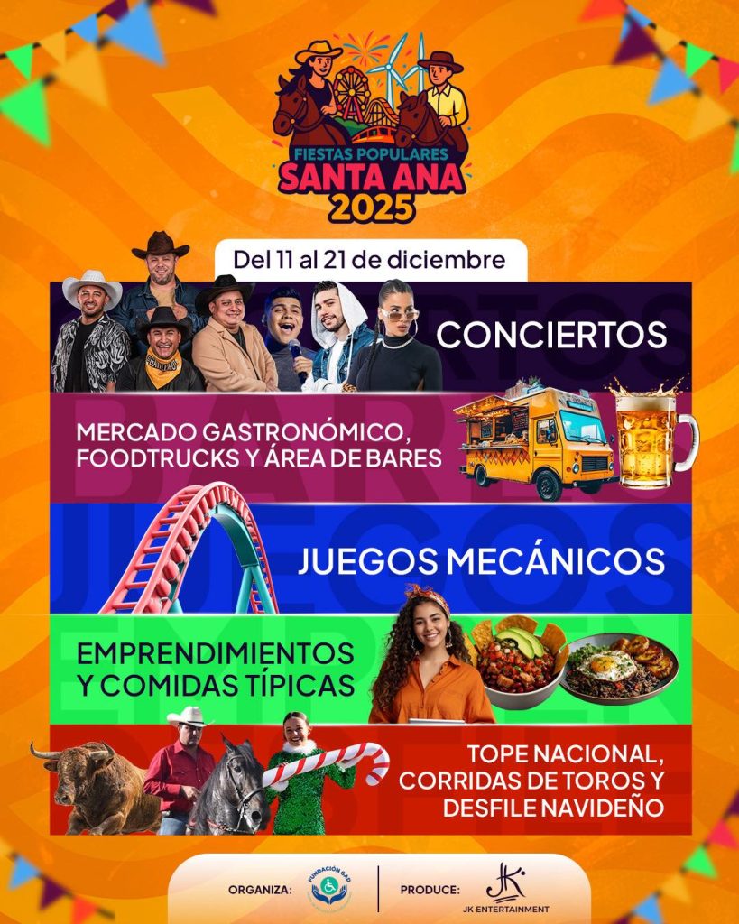 Del 11 al 21 de diciembre, el cantón de Santa Ana se llenará de música, color y tradición con la llegada de las esperadas Fiestas Populares Santa Ana 2025, un evento que promete once días de diversión y convivencia familiar.