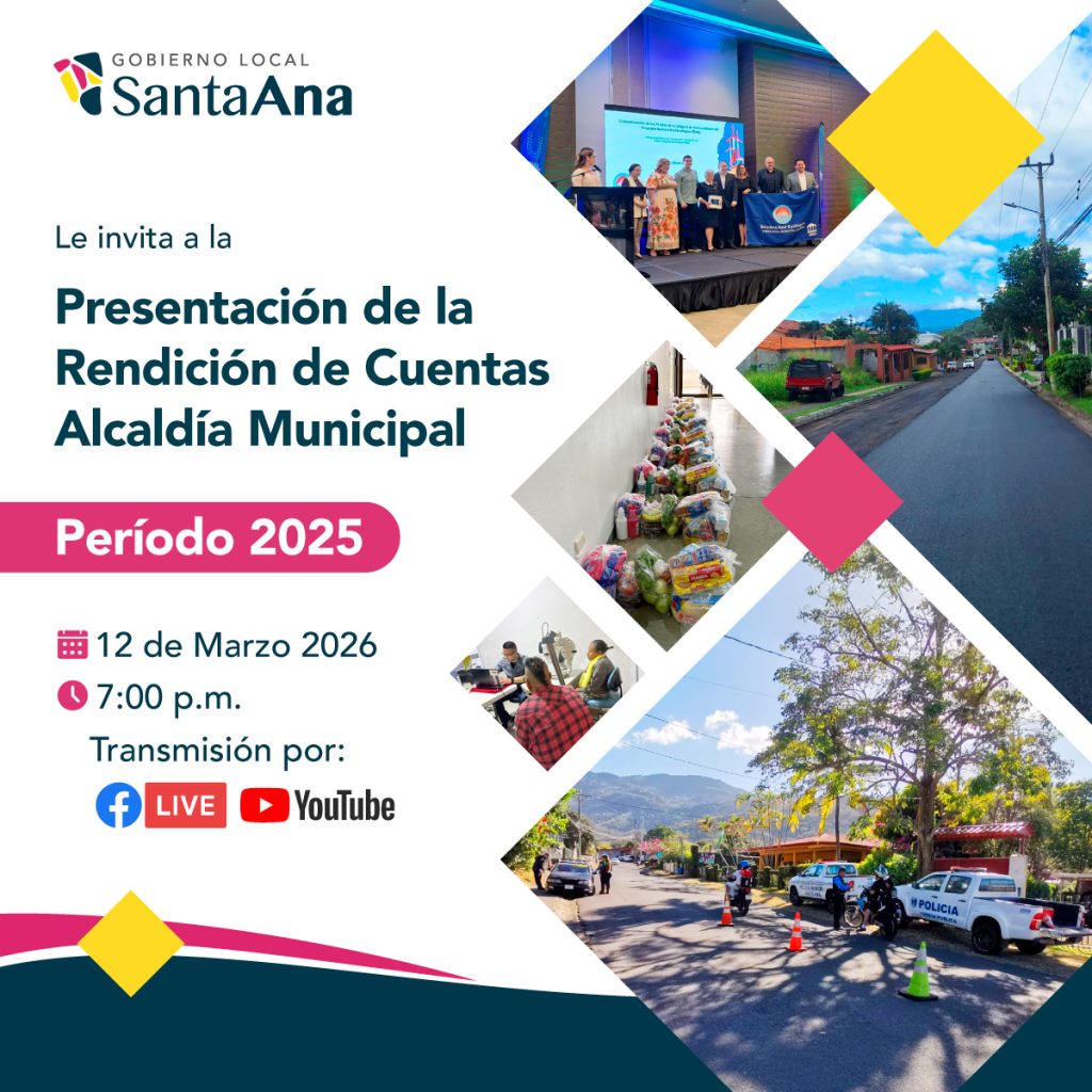 La actividad está programada para iniciar a las 7:00 p. m. y será transmitida en vivo a través de Facebook Live y YouTube de las redes sociales de la Municipalidad, con el objetivo de que los vecinos del cantón puedan seguir la presentación y conocer de primera mano las acciones ejecutadas por el gobierno local.