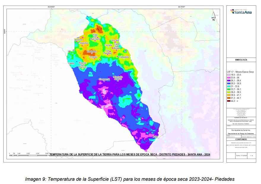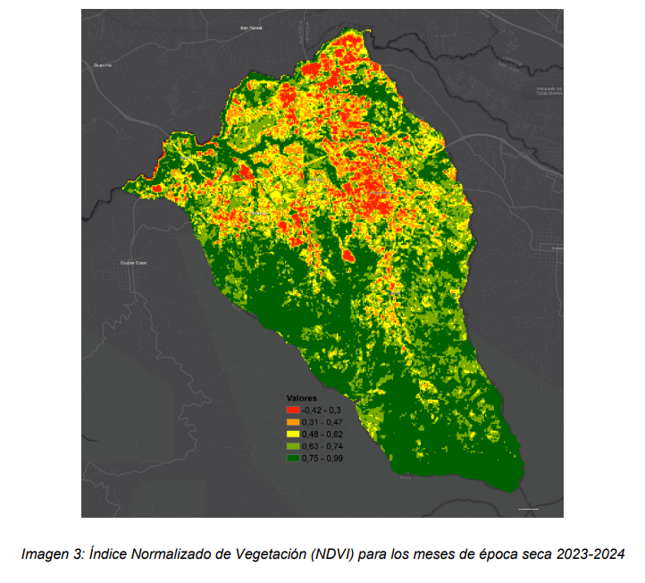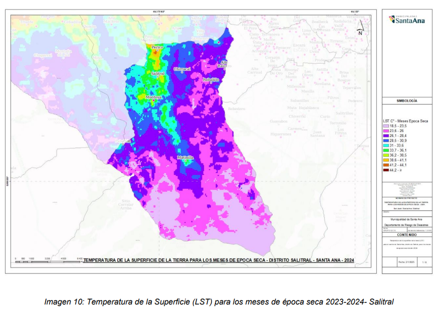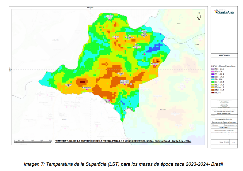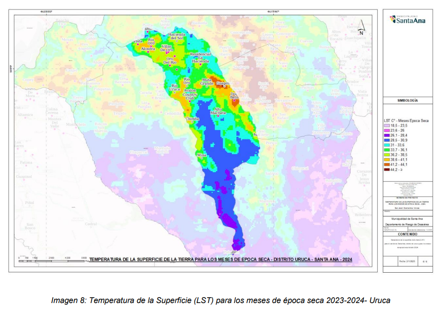 El análisis, basado en índices térmicos como el NDVI (Índice de Vegetación de Diferencia Normalizada) y la Temperatura de la Superficie Terrestre (LST), permitió identificar áreas con mayor acumulación de calor durante la época seca 2023–2024. Los mapas de isotermas y las imágenes térmicas evidencian una clara relación entre alta densidad urbana, baja cobertura vegetal y temperaturas superficiales elevadas.