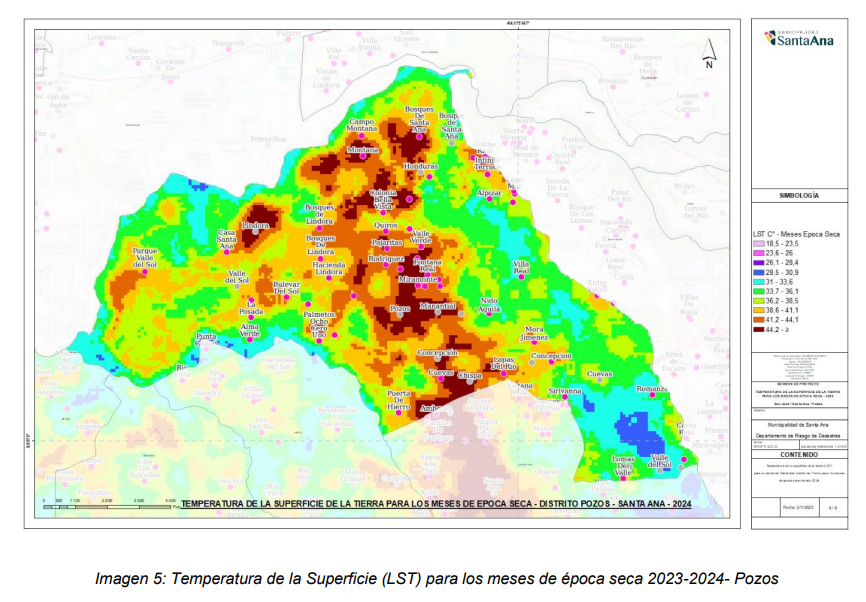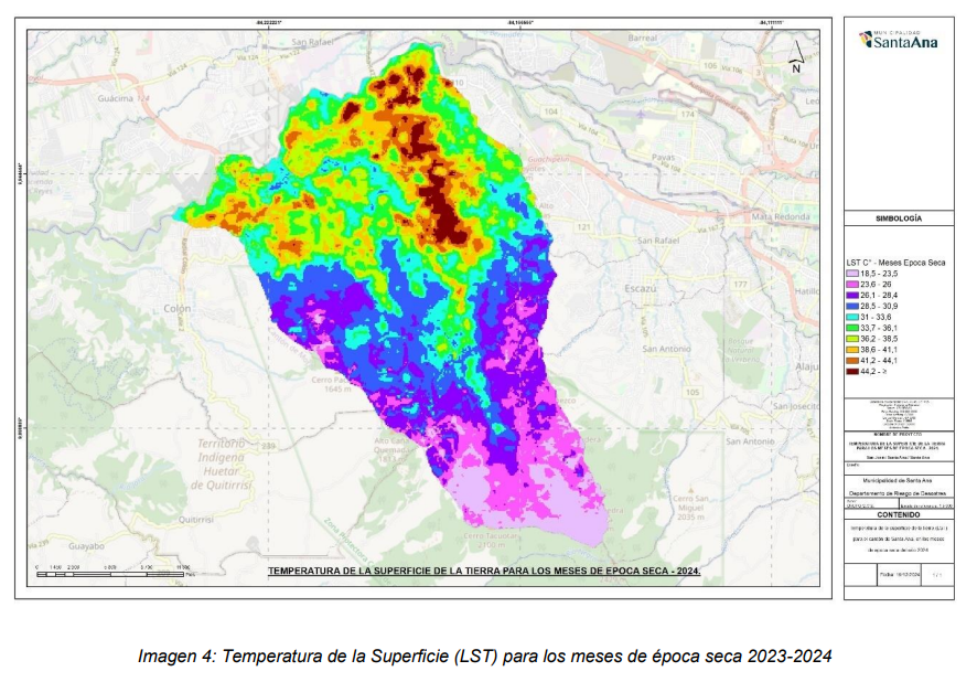 De acuerdo a un estudio realizado en el cantón de Santa Ana sobre el cumplimiento de Plan de Acción Climática Cantonal 2023–2027 se analizó el fenómeno de las islas de calor urbano (ICU), una condición que incrementa la temperatura en áreas urbanizadas frente a zonas rurales o con mayor cobertura vegetal. Los resultados confirman que este fenómeno representa un desafío directo para la calidad de vida, la salud pública y la sostenibilidad ambiental del cantón.