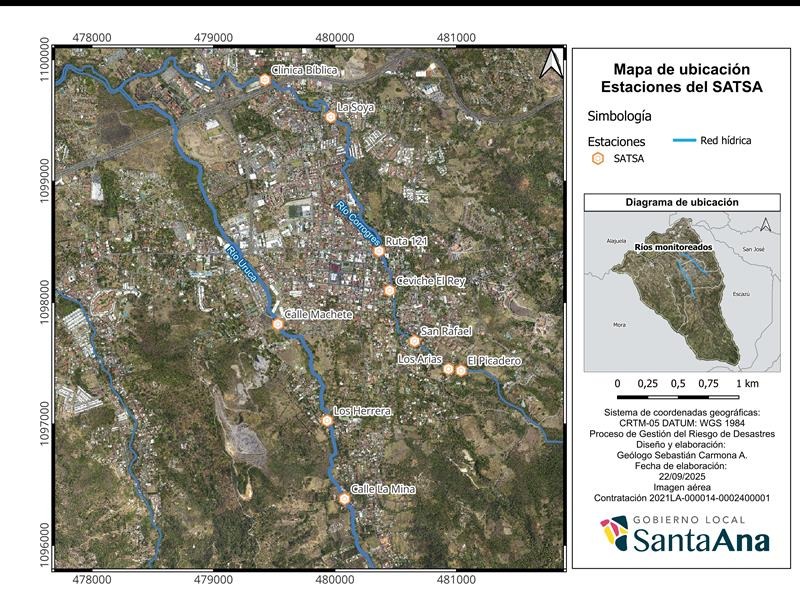 De acuerdo con el comunicado del Gobierno Local, la ubicación de los dispositivos responde a estudios técnicos de las cuencas hidrográficas y de zonas históricamente afectadas por eventos naturales. Actualmente, las estaciones se encuentran en sectores de las cuencas de los ríos Uruca y Corrogres, en puntos como Calle La Mina, Los Herrera, Calle Machete, Barrio Los Arias, El Picadero, San Rafael, Ruta 121 y otros sitios considerados estratégicos.