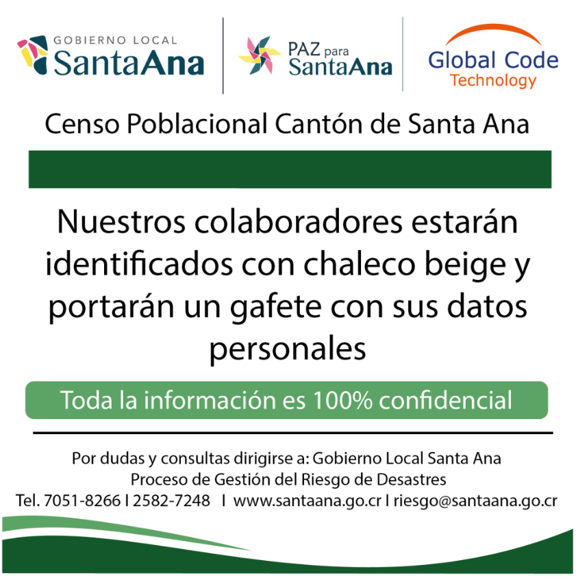 En caso de dudas o consultas, las personas pueden comunicarse al correo riesgo@santaana.go.cr o a los teléfonos 2582-7248 y 7051-8266.