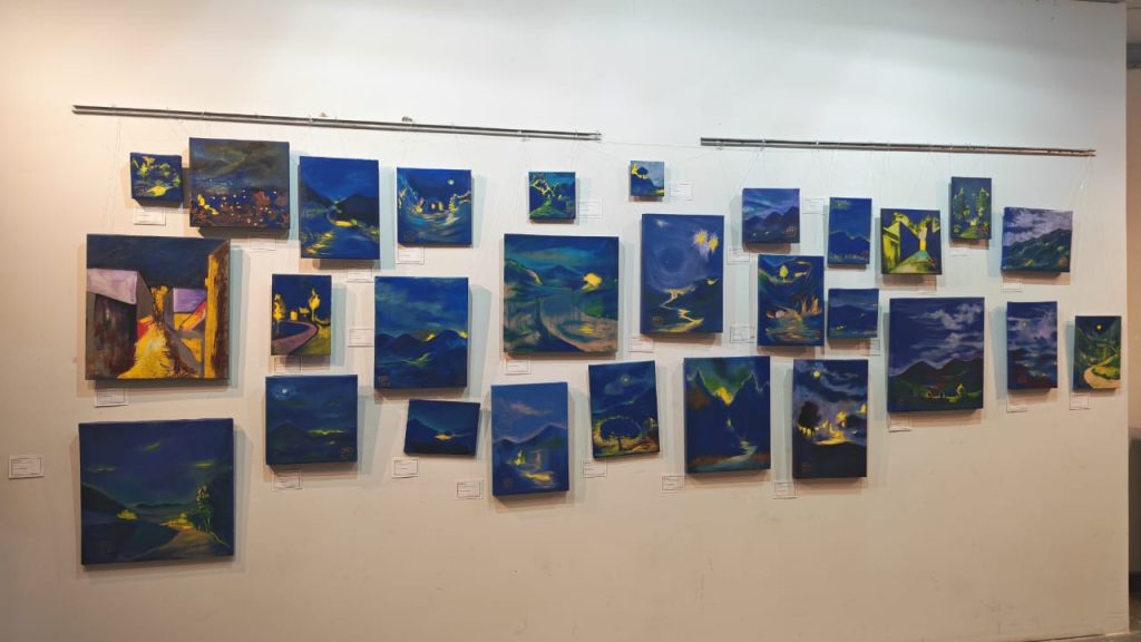 Su serie de cuadros actuales, de estilo impresionista, surge de un proceso creativo que inició hace más de una década. La temática se centra en iluminaciones nocturnas y en cómo la luz artificial transforma árboles y paisajes, concepto que comenzó a desarrollar cuando trabajaba en el EMAI. “Es maravilloso trasladar estas luces a la pintura. Es una fórmula que se ha trabajado durante muchos años”, relató.